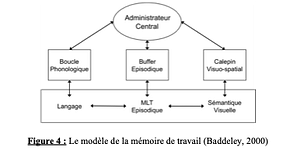 Le modèle de Baddeley (1986, 2000) définit la mémoire de travail en composantes :