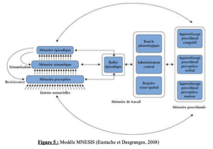 Eustache et Desgranges (2008) vont plus loin avec le modèle MNESIS : la mémoire est un système dynamique, où souvenirs personnels et connaissances s’entrelacent. Ils introduisent la sémantisation (conversion d’un souvenir épisodique en savoir général) et la consolidation (renforcement ou déformation de souvenirs).
